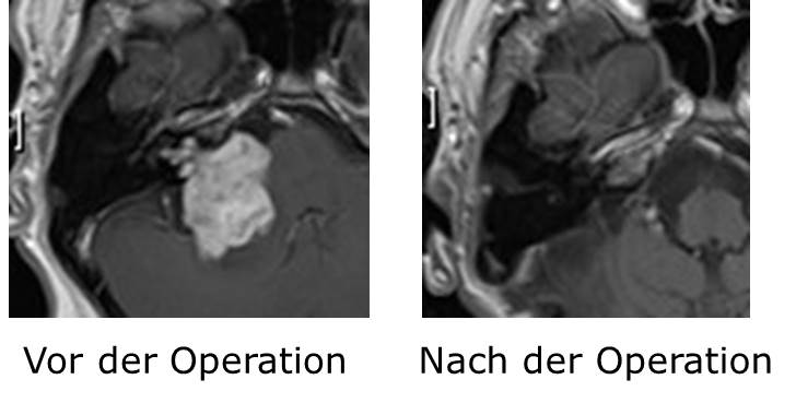 Diese Eingriffe werden selbstverständlich mit Unterstützung der hochmodernen Geräte zum Monitoring der Hirnnervenfunktionen und mit dem speziellen umfangreichen Schädelbasisinstrumentarium vorgenommen.