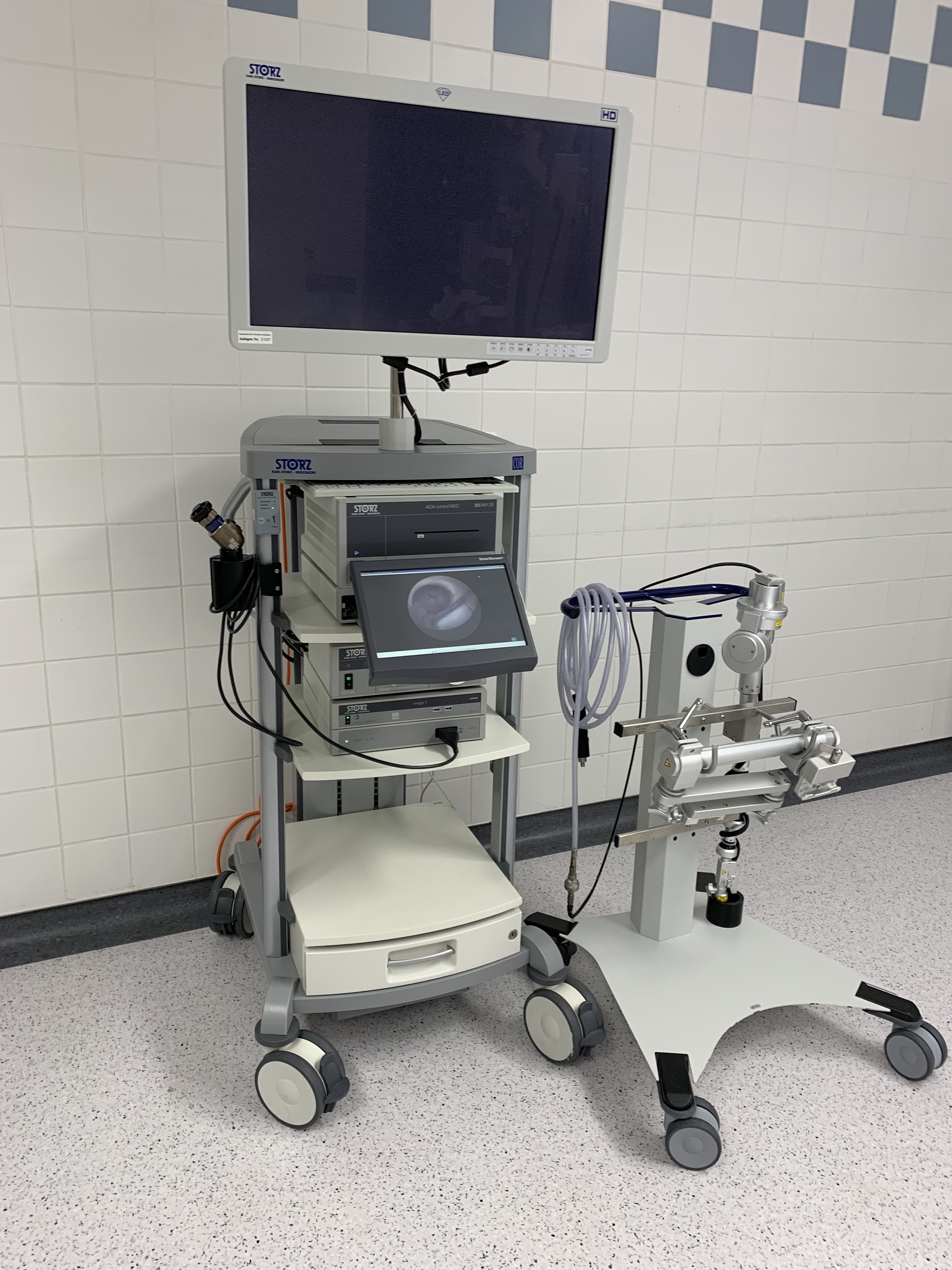 - Komplette Neuroendoskopie sowohl des Ventrikelsystems als auch der Schädelbasis und der Wirbelsäule mit einer hydropneumatischen Halterung steht zur Verfügung.